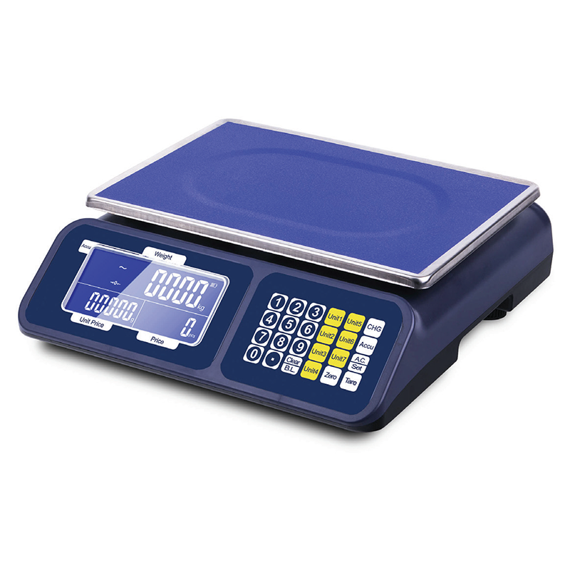 This electronic price computing scale features a new design equipped with a high-capability AD converter, delivering exceptional precision and stability. Engineered for energy efficiency, it operates on a low power consumption system and is powered by a reliable 4V 4Ah rechargeable battery, ensuring long-lasting performance. The scale includes a double display system: a large 5.5-inch front display for clear visibility, available in either a white LCD with blue backlight or a black LCD with green backlight. A durable stainless steel (SS) pan adds to its practicality and hygiene, making it ideal for retail and commercial weighing applications.